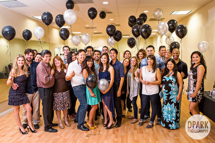 David threw a surprise dance party at our studio! He rented out the studio for the evening while one of our fabulous instructors, Tayler, was on the scene for all the fun. Tayler & all the guests were gathered in the dark studio when David brought Drexelle in for the big surprise! Adorned with decorations & a delicious cake, she cried tears of joy. She was completely caught off guard! Tayler lead everyone through lessons in swing, salsa and the wobble line dance. Everyone had a blast!